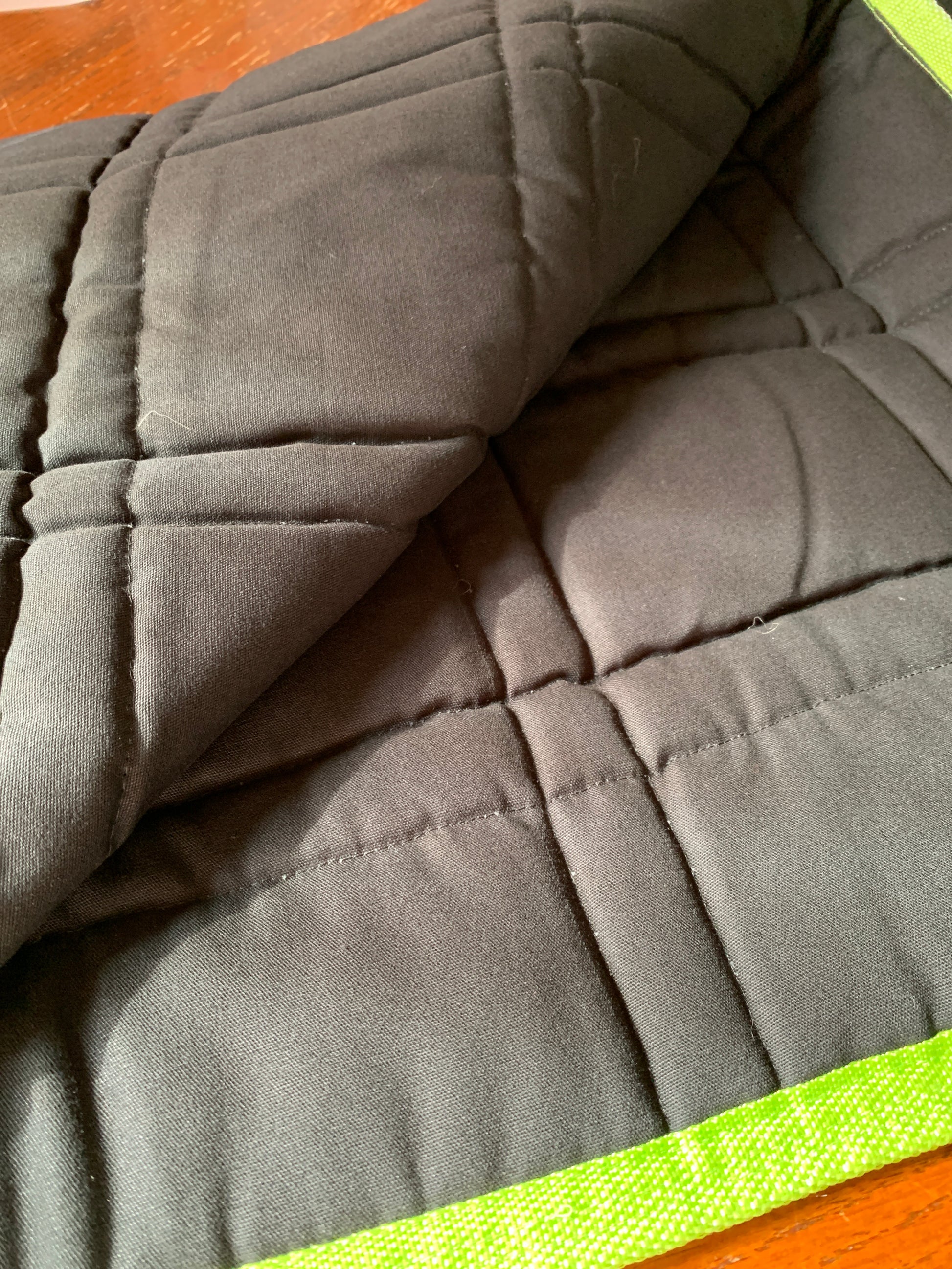 The Abstract Western Horse Saddle Pad features a durable cotton blend fabric with a striking silver, black, and lime green design. Equipped with 8-ounce batting for cushioning and a quilted surface for improved stability, it also includes a black denim-like backing for enhanced durability. The lime green mold and mildew resistant nylon webbing ensures longevity, while the washable material allows for easy maintenance. Hang to dry for optimal care.